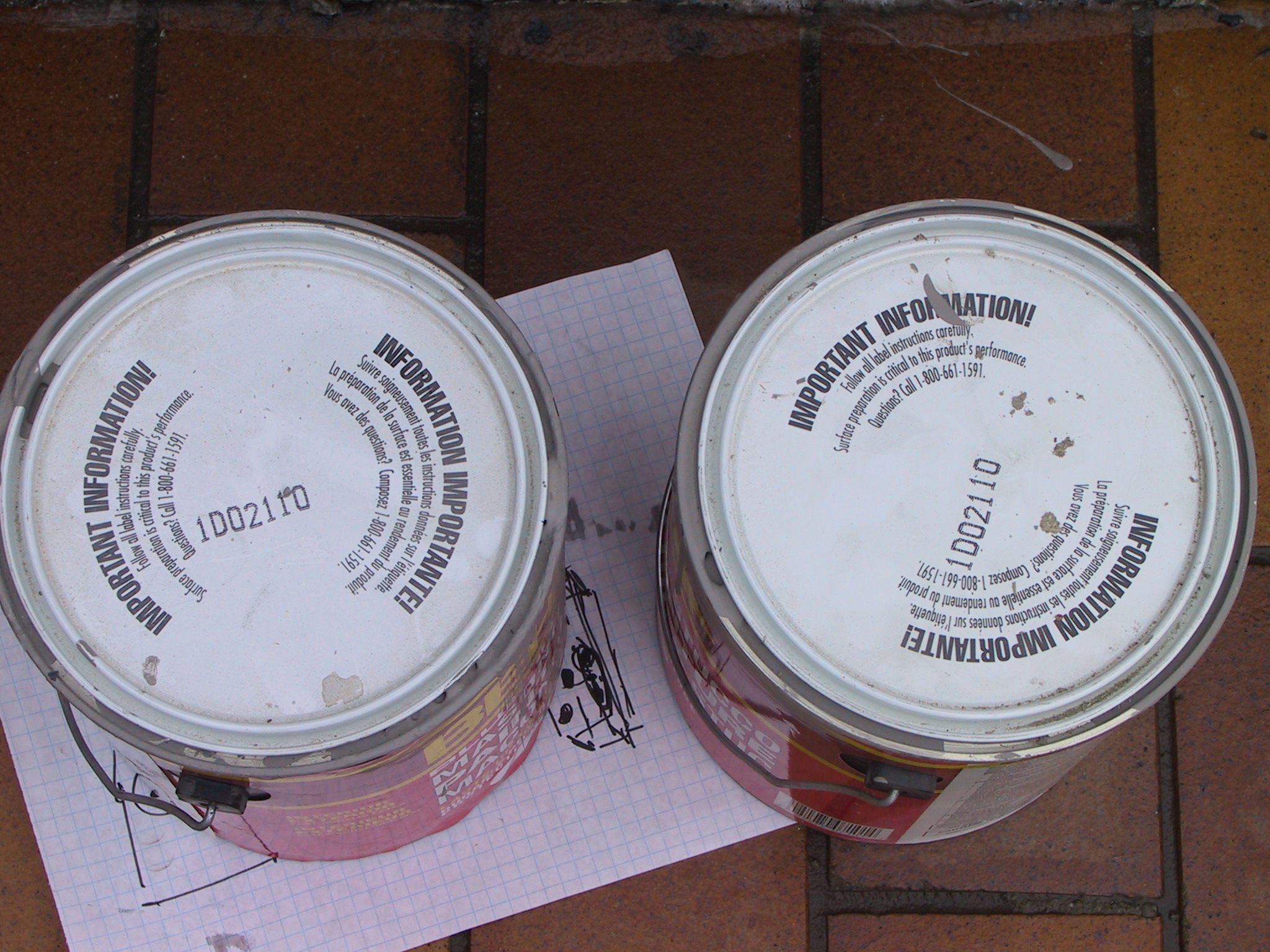 two new cans of the same floor paint with slightly different numbers,