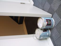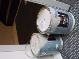 paints and primers, on the floor,