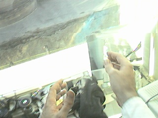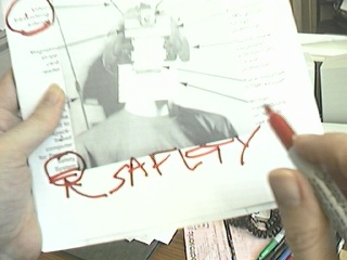 One computer goes to the big screen projector and runs a Web broswer that's pointed to my right eye (e.g. visits my EyeTap site). A second computer runs sfspeaker (SpeakFreely) and is connected to the PA system, and is responsive to the microphone array of my apparatus. A third computer runs sfmike and is set up so that I can hear the audience, their reactions to my lecture, and such. The third system sends the sound back to me, so that I can get audience feedback without acoustic feedback (e.g. I can hear the audience without getting the screech or squealing sound of positive feedback run amok).