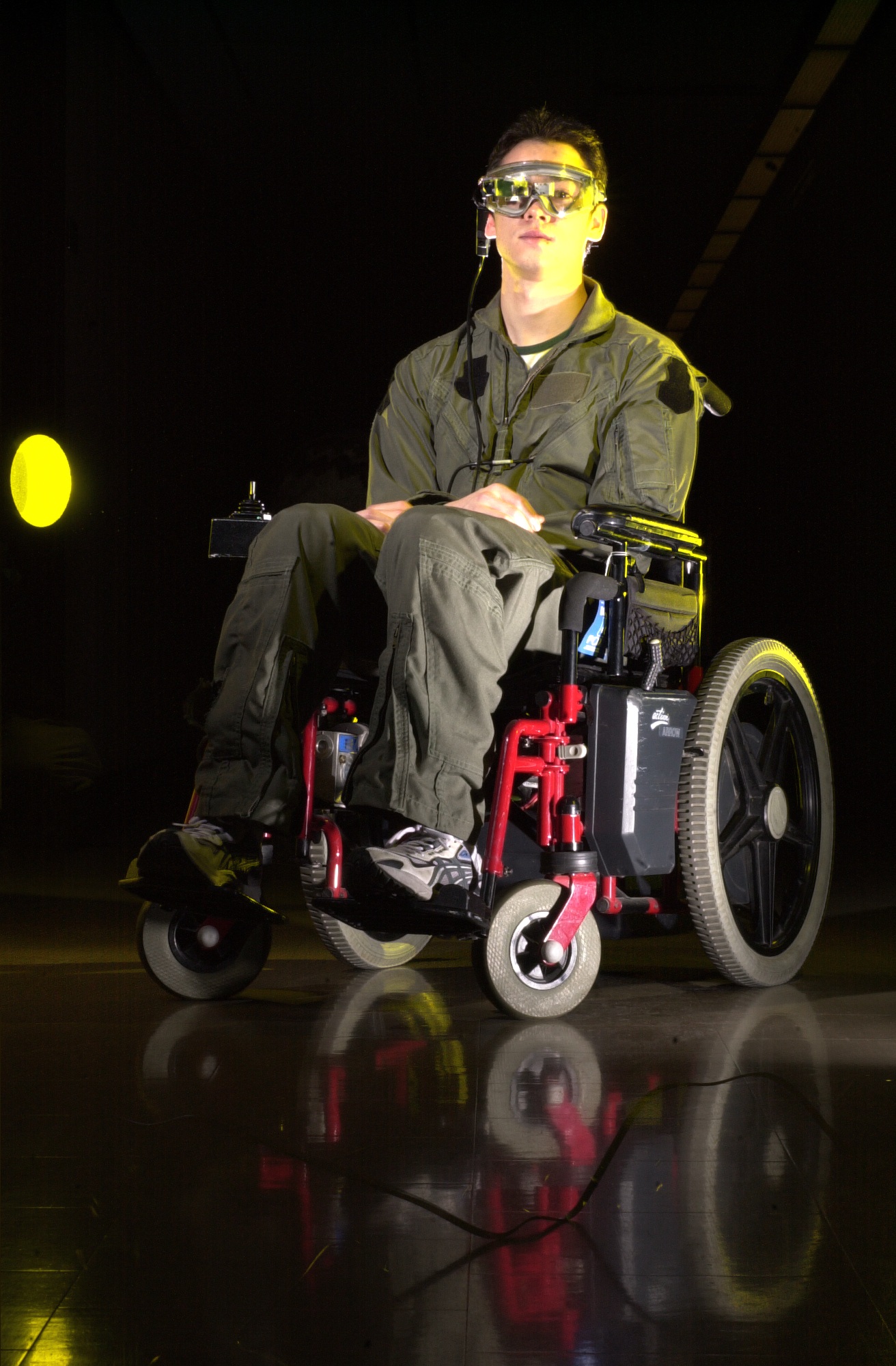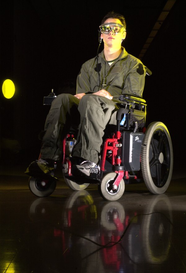 Chris Aimone in the EyeTap wheelchair that drives where the wearer looks: