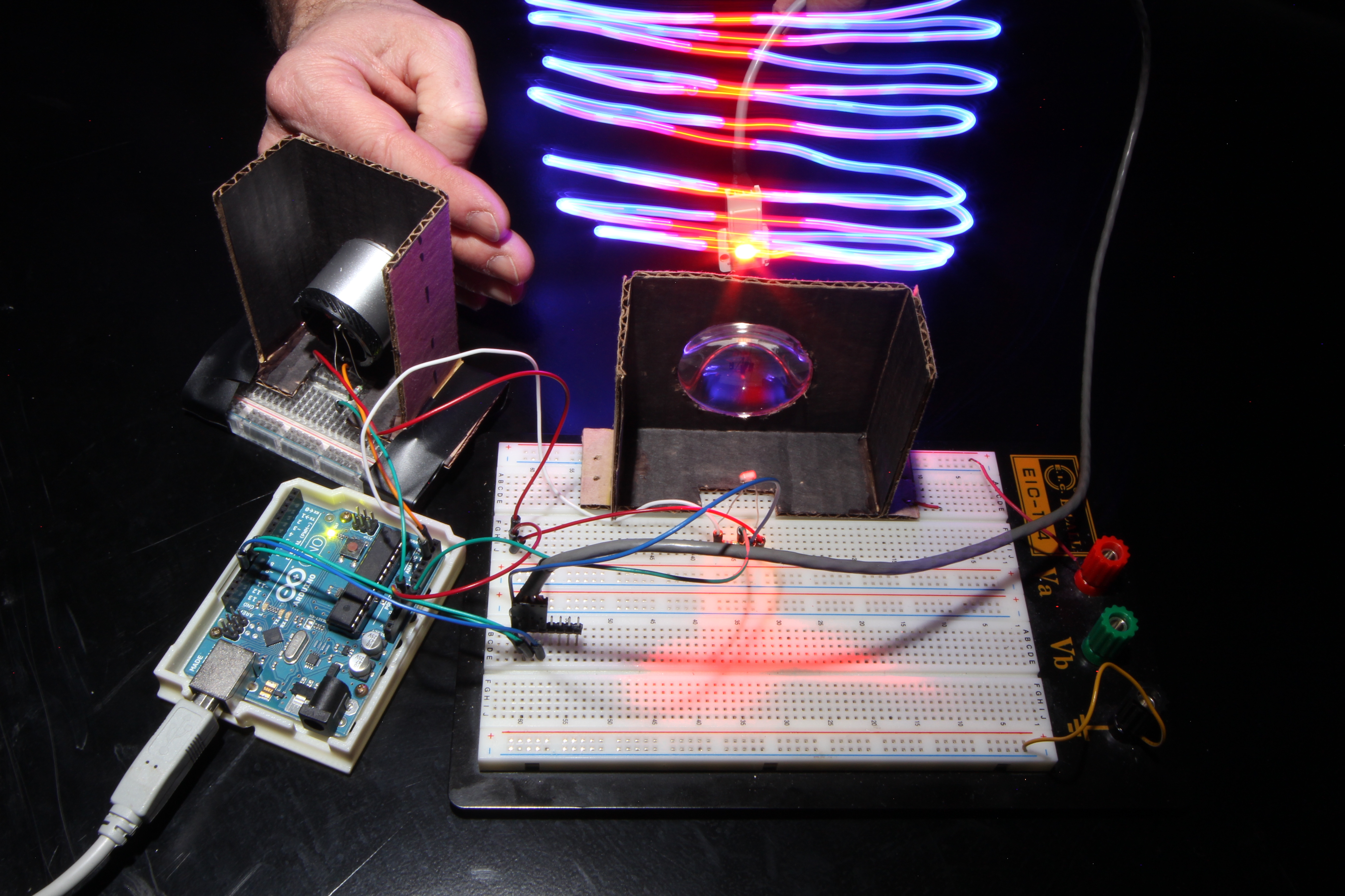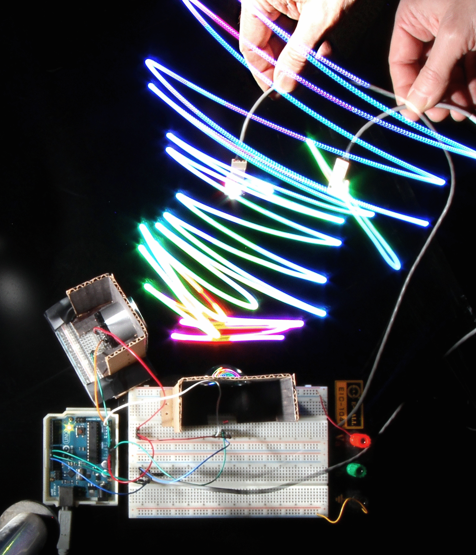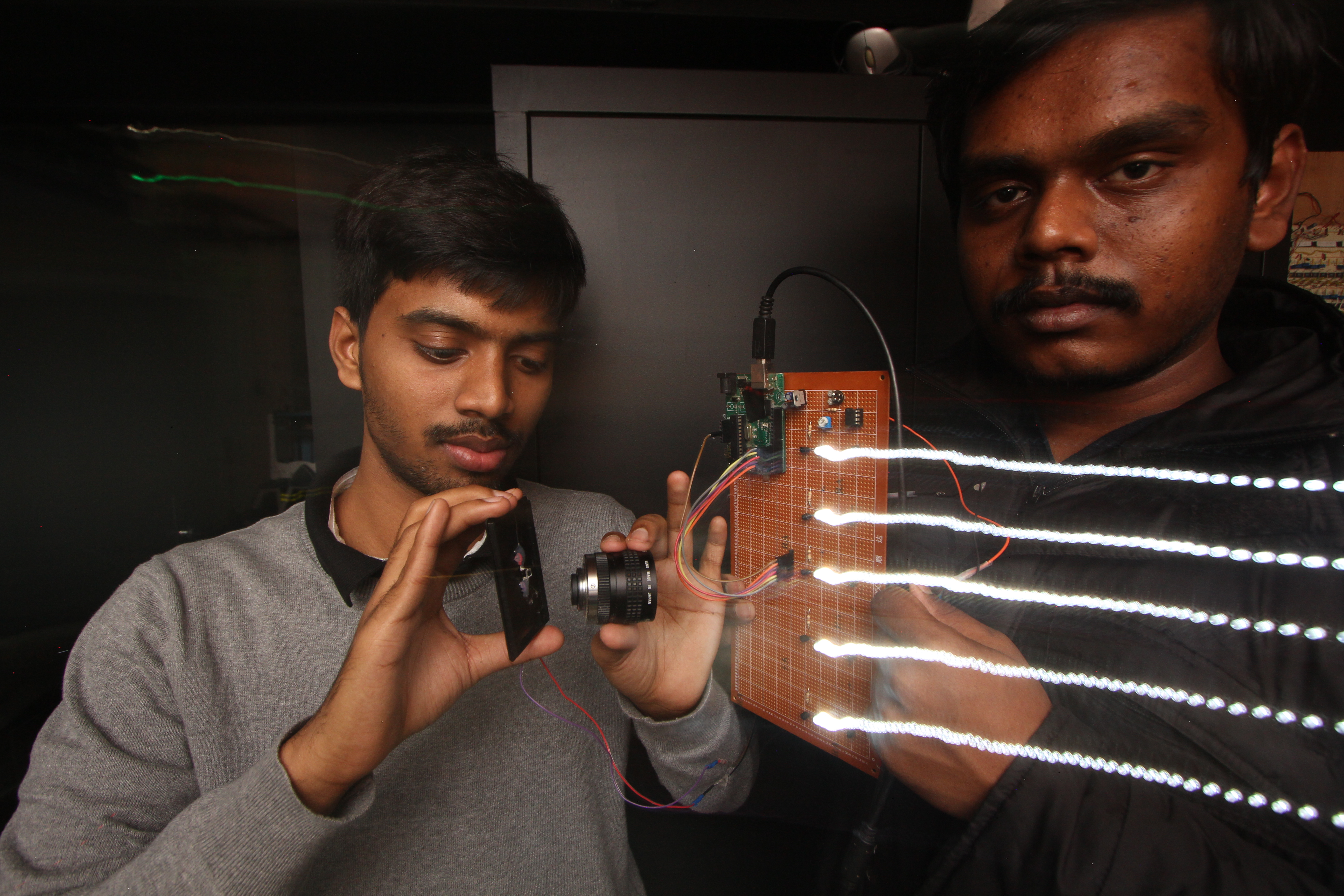 Sen used two lights, one pointing toward the abakographic camera, and the other toward the camera under test: