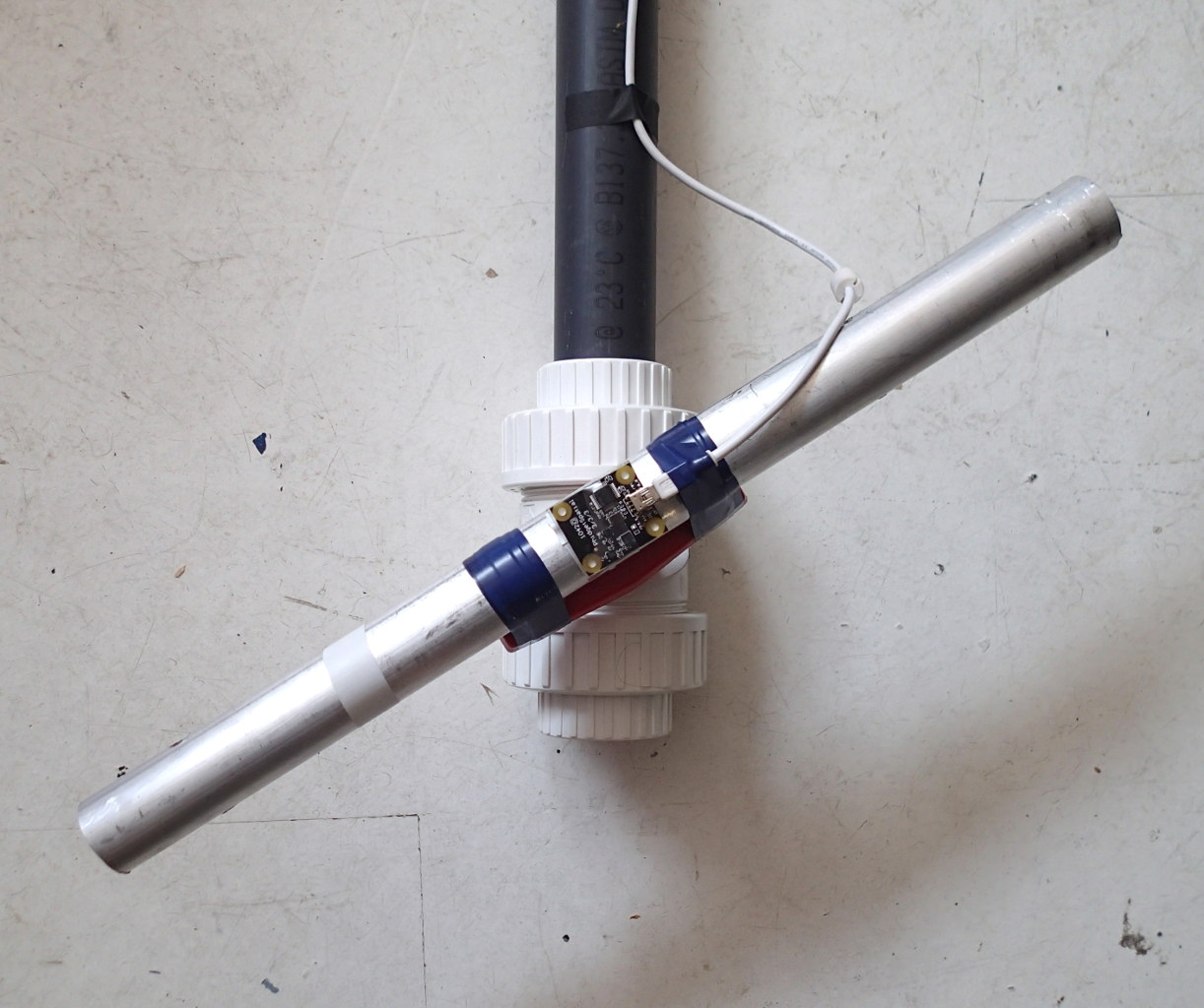 I attached a long metal bar to the ball valve, together with a flow sensor or virtual flow sensor (e.g. tilt sensor), as shown below: