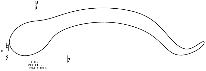Sharps and flats are played using "snake" embouchure.