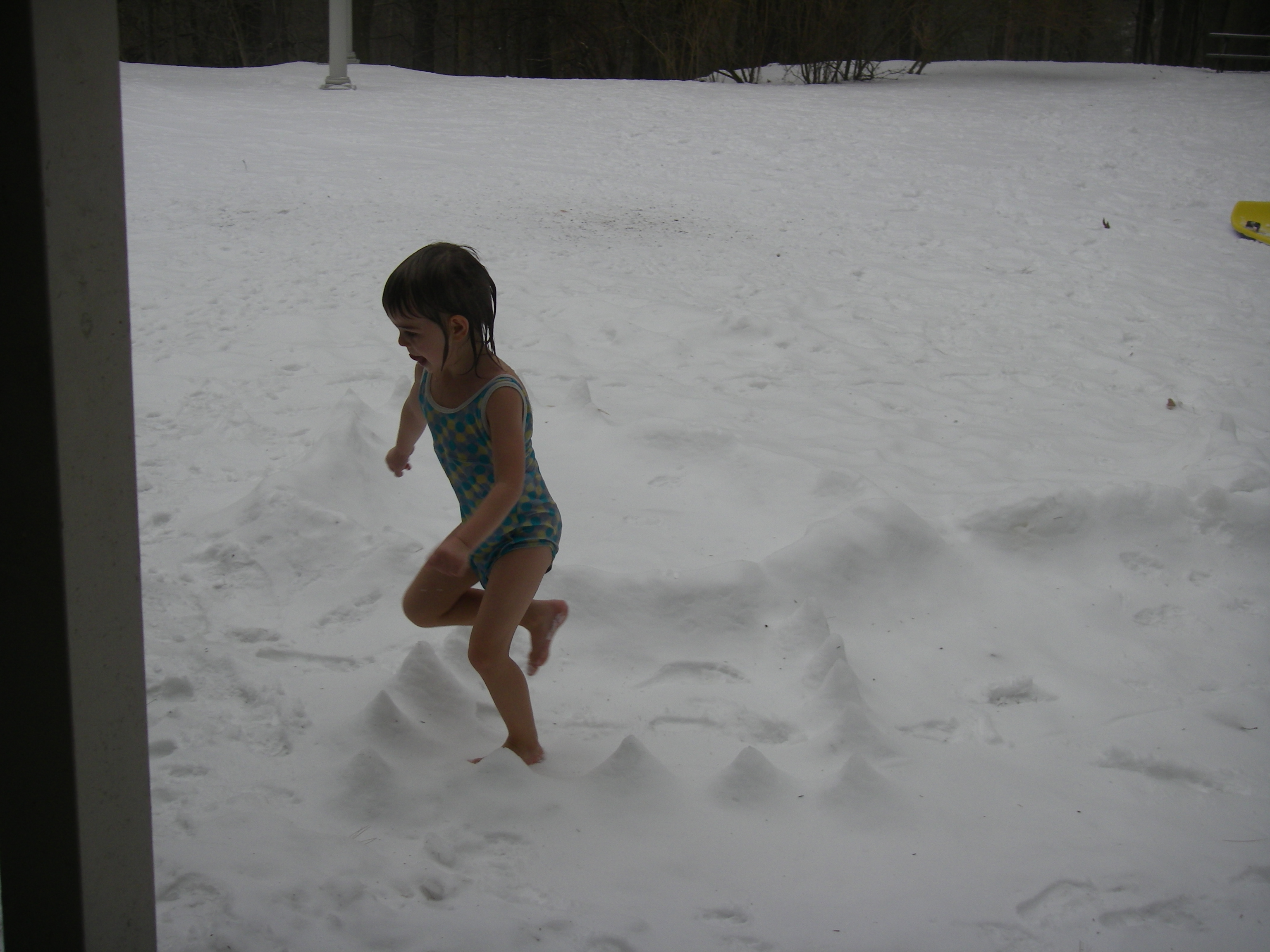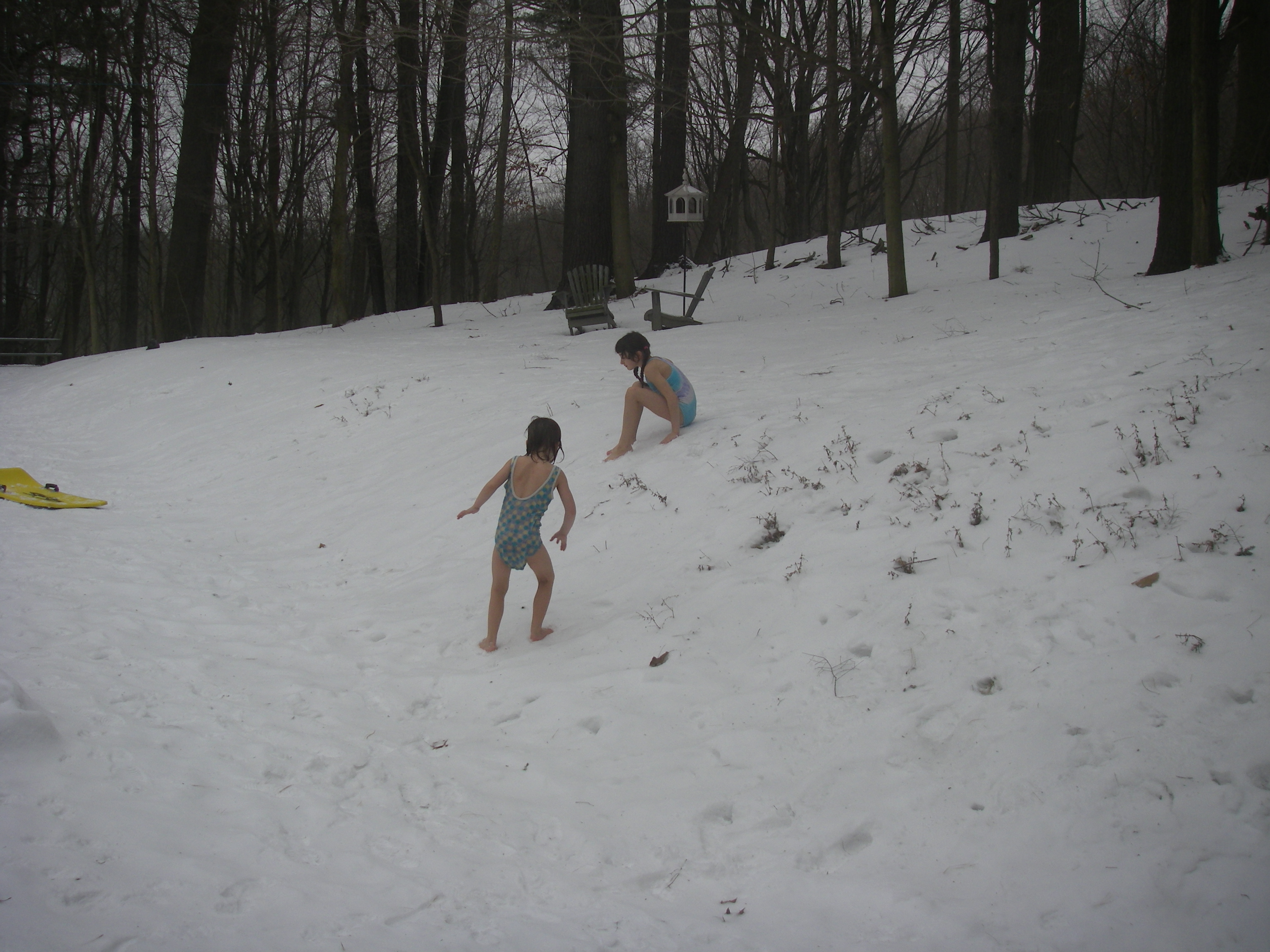 and "snowdiving", "swimming" or rolling in the snow in our bathing suits: